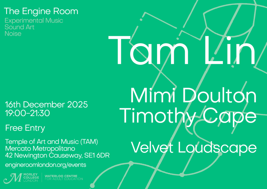 The Engine Room presents: Tam Lin, Mimi Doulton singing Timothy Cape, and Velvet Loudscape for an evening of sonic experimentation that pushes at the boundaries of sound art and music. The persona of Tam Lin reflects our social media age, in which ‘real’ selves overlap uncomfortably with digital appearances. Their latest LP, “Fizzy!”, journeys through […]